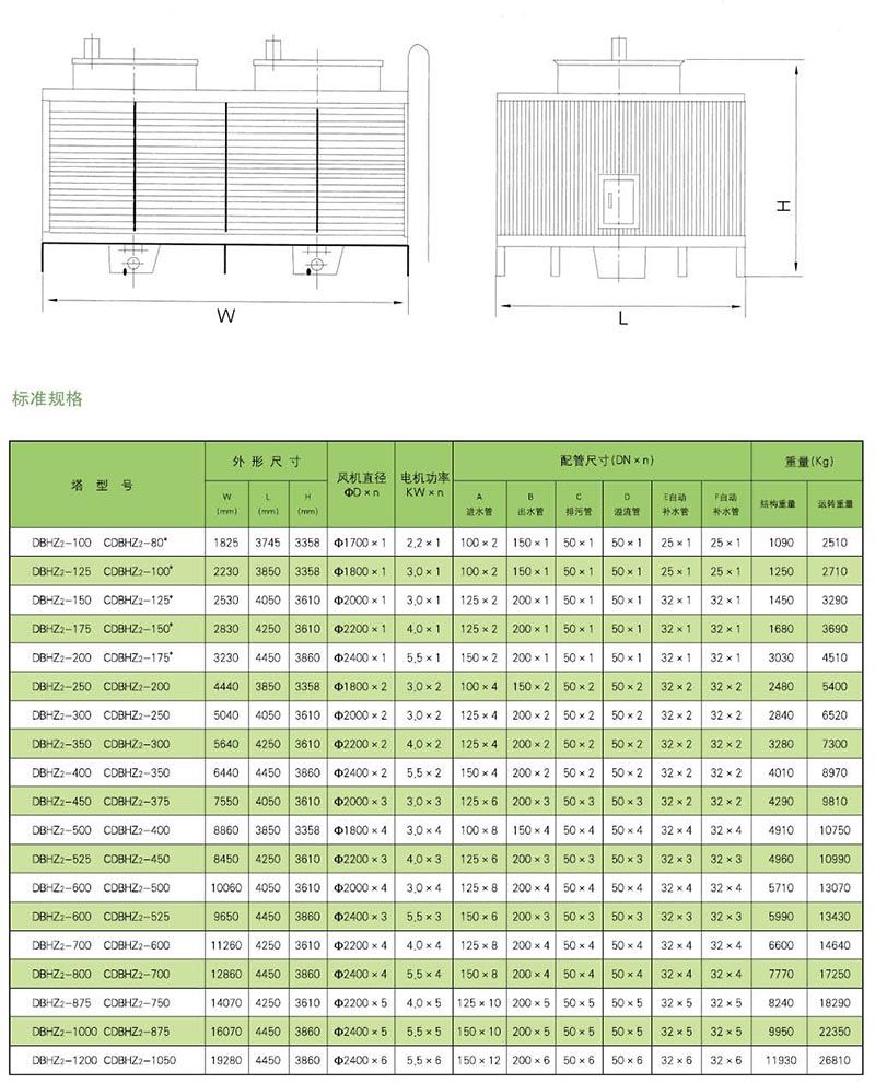 方形橫流式冷卻塔采用兩側進風,靠有部的風機,使空氣經由塔兩側的填料,與熱水進行介質交換,濕熱空氣再排向塔外。填料采用兩面有凸點的點波片,通過安裝頭使點波片粘結成整體,以搞好剛性,兩面的凸點還可避免直接滴水,因此搞好了水膜形成能力,填料尾部設有收水措施。 (1)面板:玻璃鋼材質,表面光潔好看觀,防生銹,防老化。 (2)填料:為改性聚氯乙烯雙向點波片,熱力性能好,氣流阻力小,剛性好,防熱75℃、防寒、阻燃。 (3)風機:葉片材質為合金鋁板。風機氣動力合理、風量大、結論率高、噪聲低、防生銹等點。 (4)電機和減速機:為外協設備。 (5)布水槽:玻璃鋼材質,配水均勻,低噪聲型有蓋板可蔽光,防雜物飛入,減少濺水聲。 (6)消聲罩:玻璃鋼材質,內粘空腔式阻燃型聚氯乙烯薄膜消聲材料。 (7)百葉窗:玻璃鋼材質,可防水濺出,并可使進塔氣流均勻。 (8)水箱:玻璃鋼材質,起集水作用,設有自動補充水設施,可閉路循環直接吸水。 (9)骨架:為折邊型鋼組裝結構,剛性好,重量輕,運輸、安裝方便,熱鍍鋅防腐 ![]() |